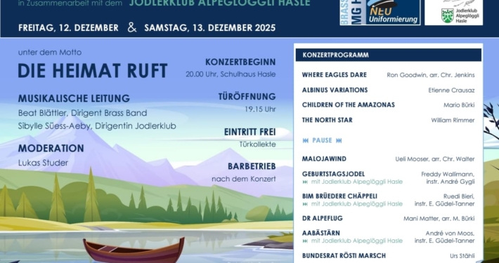 Ein Highlight unseres Kalenders ist ebenso das Jahreskonzert im Dezember. Unser Ziel ist es, für ein breites Publikum zu musizieren. Traditionellerweise spielen wir einen eher konzertanten ersten Teil, währenddem sich der zweite Konzertteil um ein ausgewähltes Motto dreht. So bekommt das Publikum einen bunten Mix von originaler Brass Band-Literatur, traditionellen Melodien, blasmusiktypischen Märschen und Polkas sowie Klassikern und modernen Stücken zu hören.